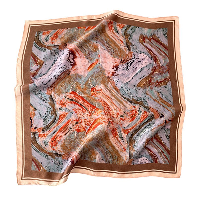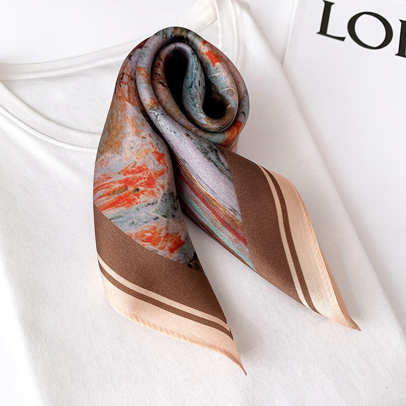 $ 16.96100% Silk 26-Inch Square Scarf for Women Retro Neckerchief Wrap in White Orange Gray with Buckle