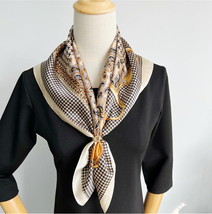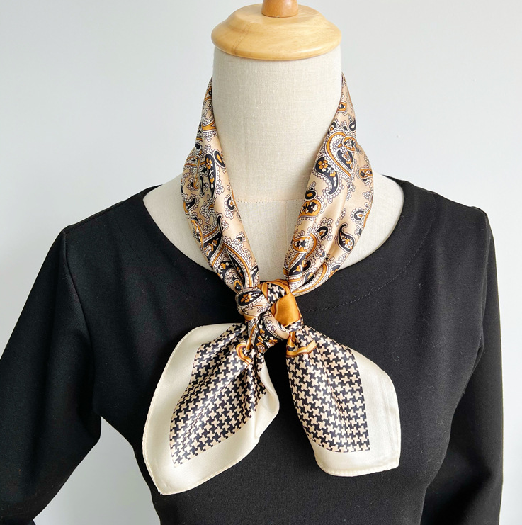 Versatile neckerchief print for adding some elegance and detail to a dark blouse or shirt. Quality jacquard twill with a great feel. Packaged well, great price, arrived quickly for overseas. Very good seller.