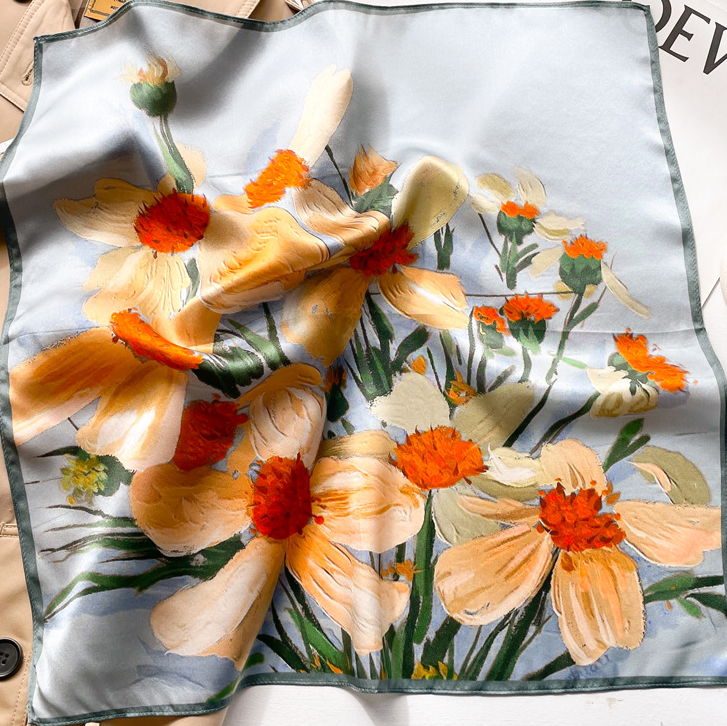 $ 6.34100% Mulberry Silk Square Scarf for Women 53x53cm Wrap Bandana Kerchief