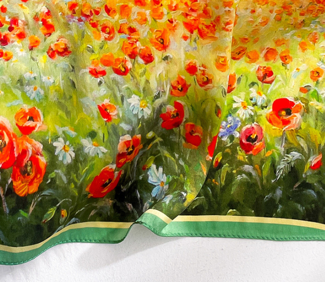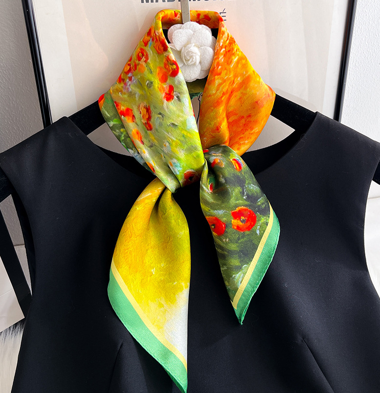 100% Mulberry Silk Scarf Yellow Floral Square Bandana Wrap 21 Inch for Women