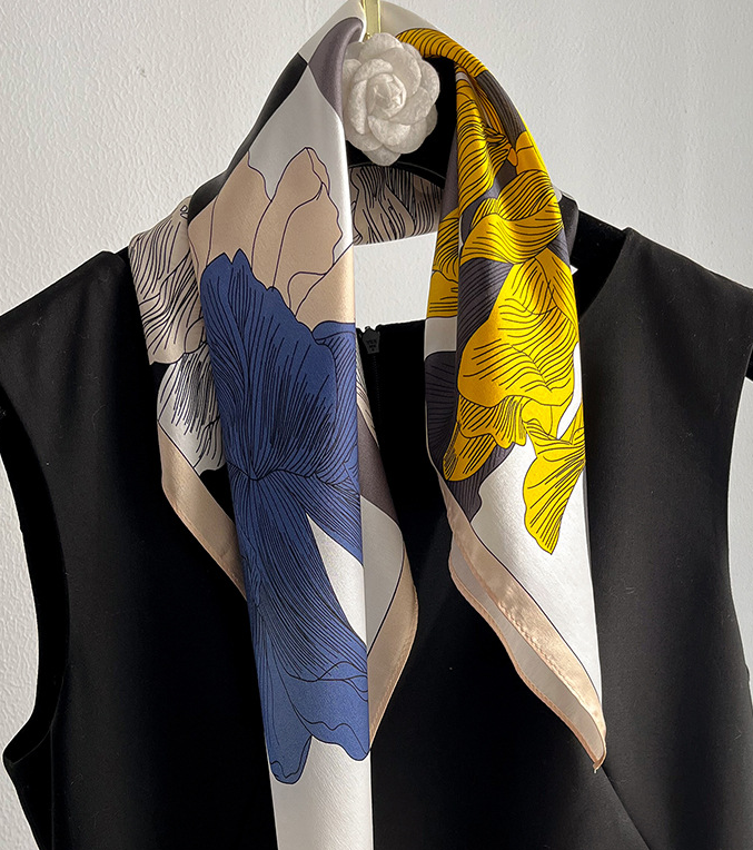 100% Mulberry Silk Scarf for Women 53x53cm Fashion Printed Shawl Wrap