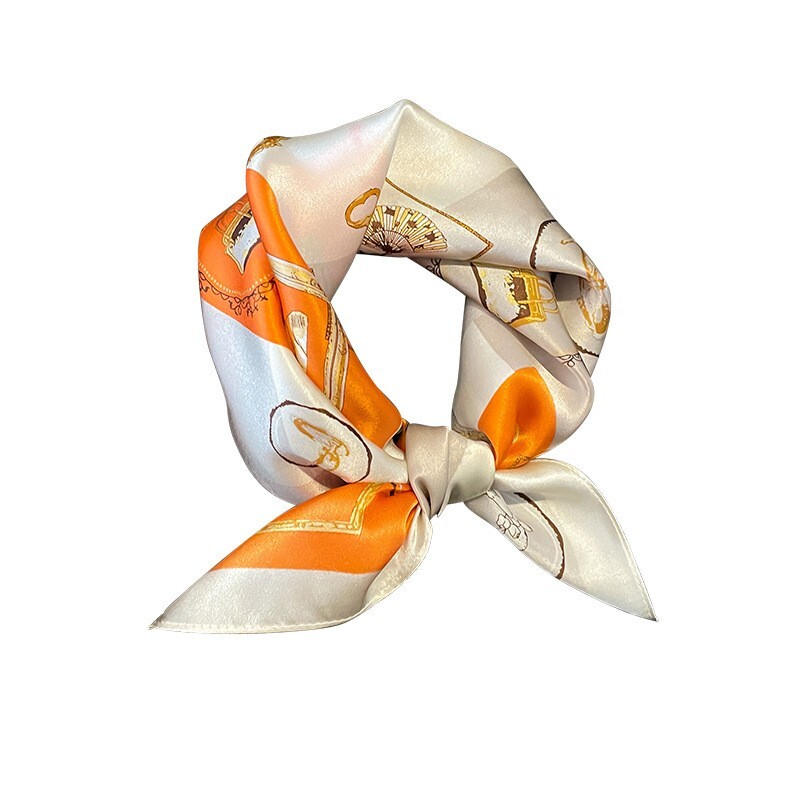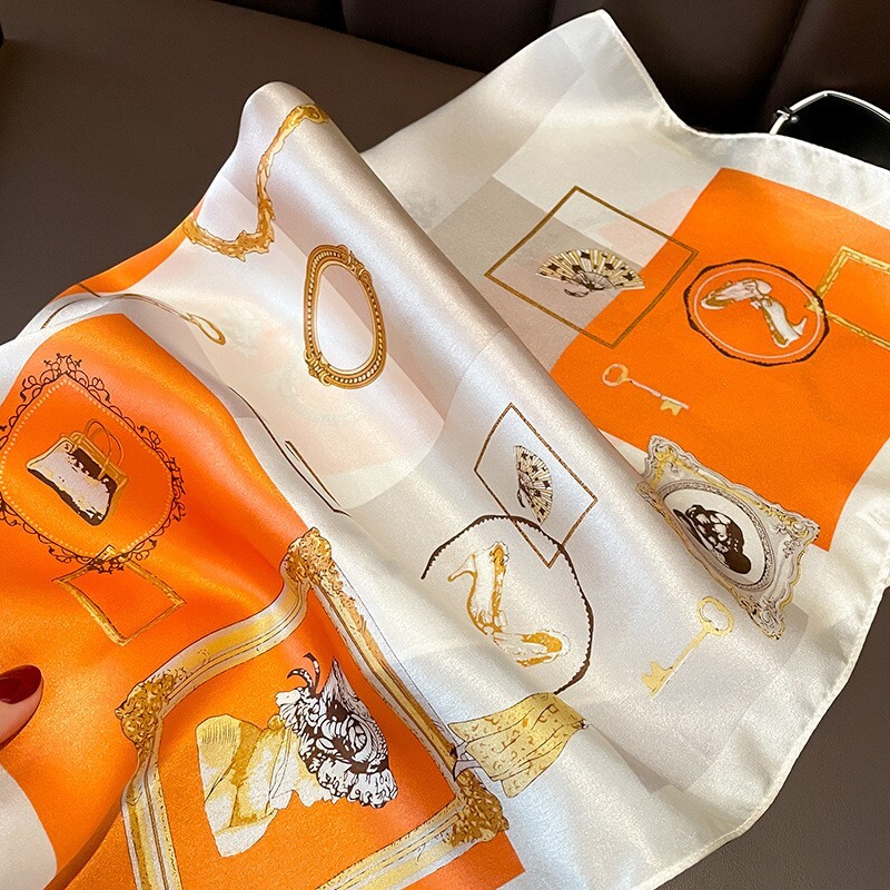 $ 16.96100% Silk Vintage Orange Floral Scarf for Women Head Neck Hair Bandana 26