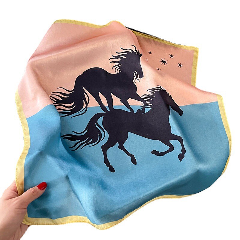 $ 7.71100% Mulberry Silk Scarf Women Square Head Square Necktie Hairband Print 53cm-@