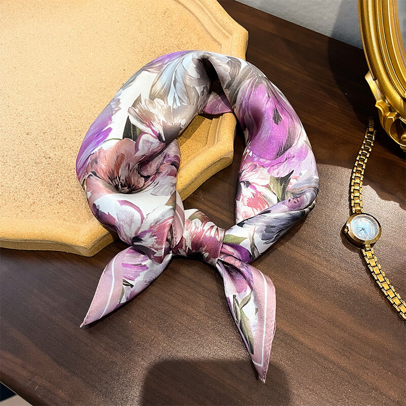 $ 7.71100% Mulberry Silk Scarf Women Square Head Square Necktie Hairband Print 53cm-*