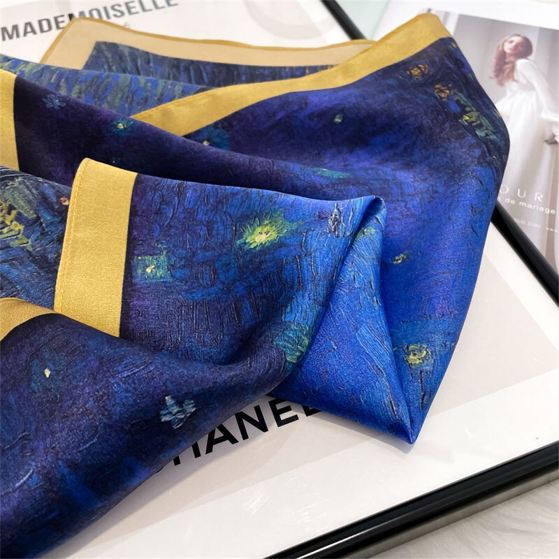 $ 7.41100% Silk Blue Floral Scarf for Women 53x53cm Lightweight Wrap Bandana