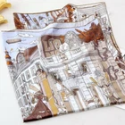 $ 7.92Pure 12 Momme Silk Wrap Scarf Pink Town Print 27 Inch Square Shawl