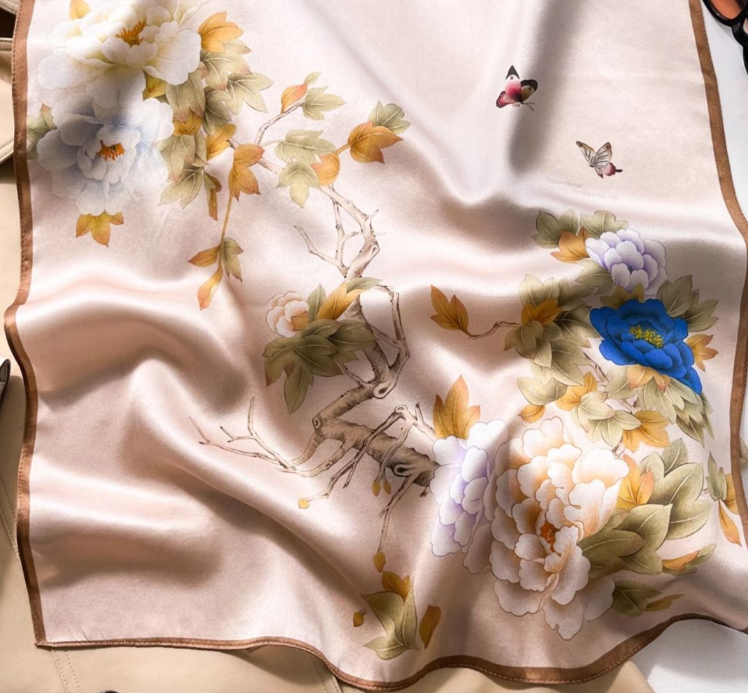 100% Mulberry Silk Square Scarf for Women 53x53cm Fashion Printed Shawl