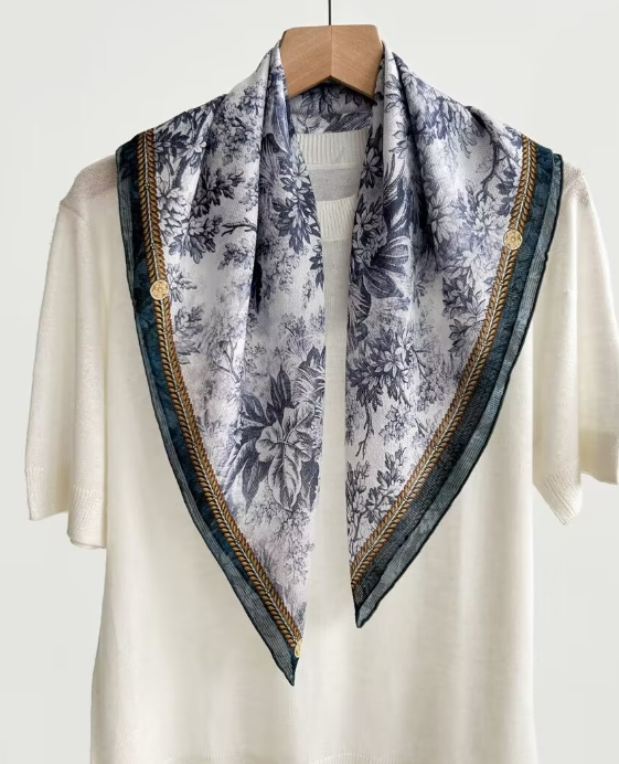 $ 31.68100% Mulberry Silk Square Scarf 88cm Fashionable Printed Elegant Accessory