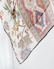 Versatile neckerchief print for adding some elegance and detail to a dark blouse or shirt. Quality jacquard twill with a great feel. Packaged well, great price, arrived quickly for overseas. Very good seller.
