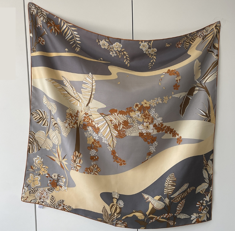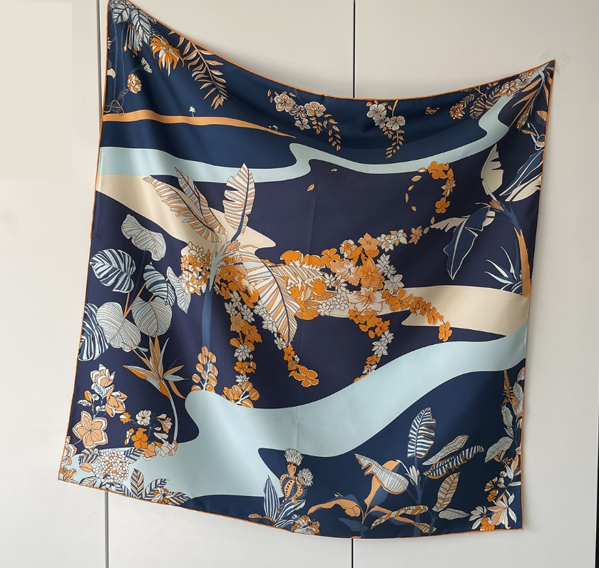 100% mulberry silk square scarf 88cm fashionable double-sided printed scarf