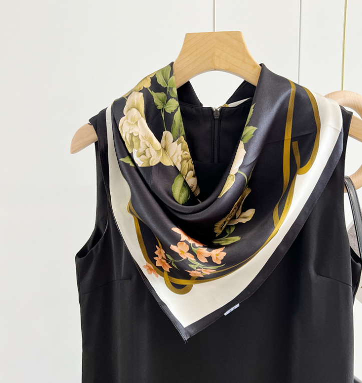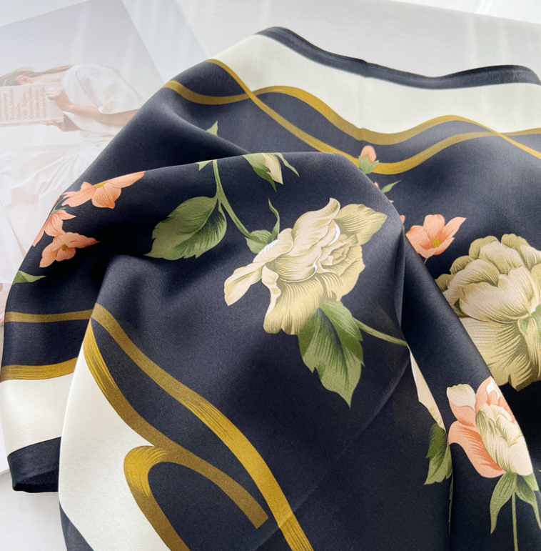$ 7.71100% Mulberry Silk Scarf for Women - Square Head Wrap, Necktie & Hairband - 53cm Floral Print