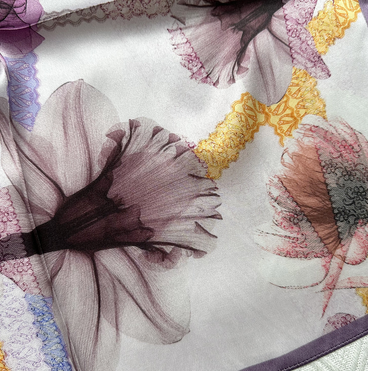 Home100% Mulberry Silk Square Scarf for Women 53x53cm Fashion Printed Shawl Wrap