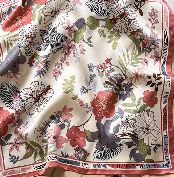 100% Mulberry Silk Square Scarf for Women 53x53cm Fashion Printed Shawl