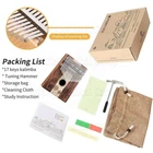 1. Packing List: [1] Kalimba [2] Flannel bag [3] Tuning hammer [4] English score [5] Syllable stickers 2.17 key Kalimba The ore metal piano keyboard is made of ore metal, which is tougher, and the key design can reduce the pain of finger playing for a long time, which is more suitable for performance. 3. Innovative ramp design The head is a thick vibration band, the tail is thin, and the oblique overhang design is conducive to the resonance of the soundbar driver panel, extending the treble hold, and the sound is more flexible. It can play warm and slow-key songs with excellent performance. 4. Eco-friendly spray painting adopts environmentally friendly paintless board, waxing process, elegant color, beautiful texture, you can touch with confidence and enjoy immersion in vocal music.