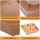 Package: Hiceeden paper charcuterie boxes contains 100 pack boxes with lids, each with a size of 5.5" L * 4.9" W * 2.4" H. This size is very convenient to carry when going to work or studying and playing. It does not need to be assembled and can be used anytime and anywhere. Recyclable waterproof and oil proof material: Hiceeden dessert container is made of high-quality thick kraft paper, preventing food from deformation. They are non-toxic safe for food and recyclable. There is a layer of membrane inside the box, which is oil and water resistant, so the oil of food will not seep out of the box. Clear transparency: This lid of the bakery box is made of food grade PET, with high-definition transparency, which can show your food very clearly. Who wouldn't be happy to watch the exquisite food in such an all-round way? Firm design: The lid is designed with a snap type, which is not easy to fall off, and there is no need to worry about food falling down from the box accidentally. At the same time, the whole box body and cover are very solid, and will not be easily squeezed and deformed. Multi function: You can use it to hold all kinds of food, such as sandwiches, small cakes, doughnuts, cookies, muffins, fruit salads, sushi, etc. In addition, it is also a very practical gift.