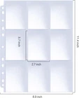 100 Pack Toploader Binder Pages 9 Pocket Page Protector for Trading Sports Cards Double Side Display: Total 900 pockets of 100 pages, 9-Pocket for each page protector. 100 pages, you can put two cards in one sleeve. Page protector fit for a standard 3-ring binder Premium Quality: Made of clear polypropylene practical quality, non-toxic, no PVC, acid free, super sturdy so it won't get bend up in the mail. Provides security for you to store and protect your trading cards, pokemon cards and baseball cards.Suit for Thanksgiving and Christmas Universal Dimensions: Page Dimensions: 8.9" x 11.4". Pocket Dimensions: 2.7" x 3.7"(69mm x 94mm). Great for storing trading cards and organizing coupons. Also ideal gift for your kids to organise pokemon game cards, top trumps, stickers, gaming cards stamps and more Top Loading Design: Insert or take out your cards from the upside, not easy to slide out, great for card storage and display. 900 pockets to double sleeve your cards. Thick sturdy plastic pockets give your trading card extra protection