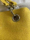 Add a touch of elegance to your outfit with this beautiful yellow paper straw shoulder bag. The bag features a solid pattern and is adorned with snap accents. It has a medium size, measuring 14x9x5 inches, and is perfect for any occasion, be it travel, weddings, parties, or just casual use. The bag is made of high-quality paper straw and has a fabric lining that adds a touch of luxury to the bag. The bag also features inner pockets, making it lightweight and easy to carry. This vintage-style bag is perfect for women who want to make a statement with their accessories. The bag is drop-shaped and has a 9-inch strap drop. The handle and strap are both yellow in color, adding a pop of color to the bag. This shoulder bag is a must-have for anyone who wants to add a touch of sophistication to their style.
