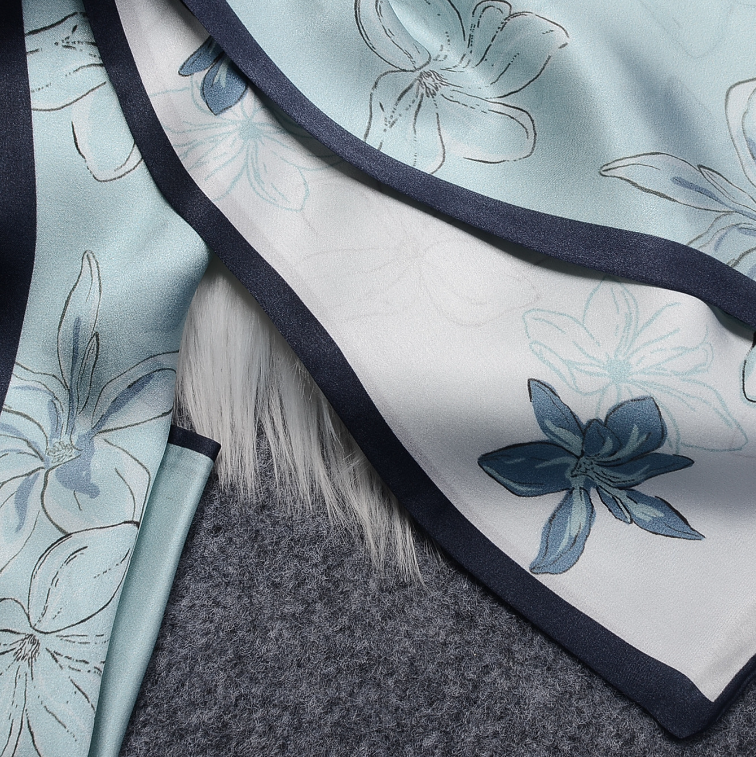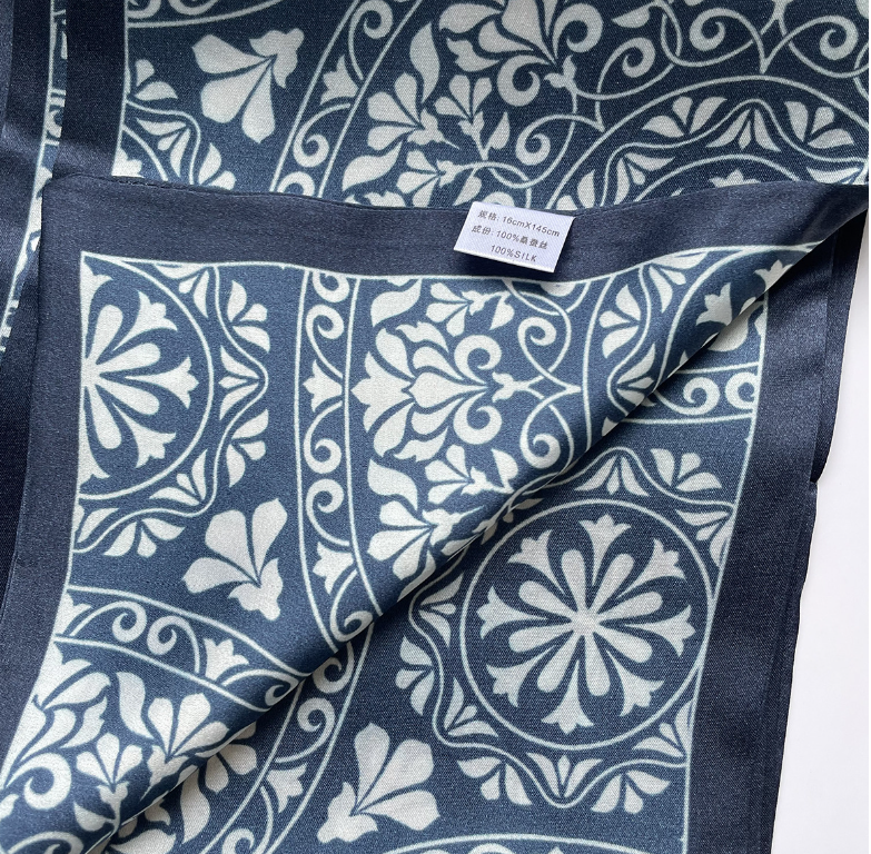 $ 8.29New Boutique 100% Crepe De Chine Silk Printing Hand Rolled Collar Scarf 70cm