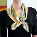 100% Silk 26" Square Scarf Women Retro Neckerchief Wrap White Orange Gray Buckle