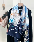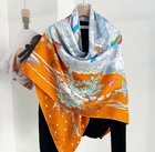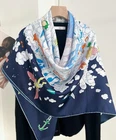 Pure Twill Silk 18 Momme Double Face Scarf Stole Animals Print Square Shawl 35"