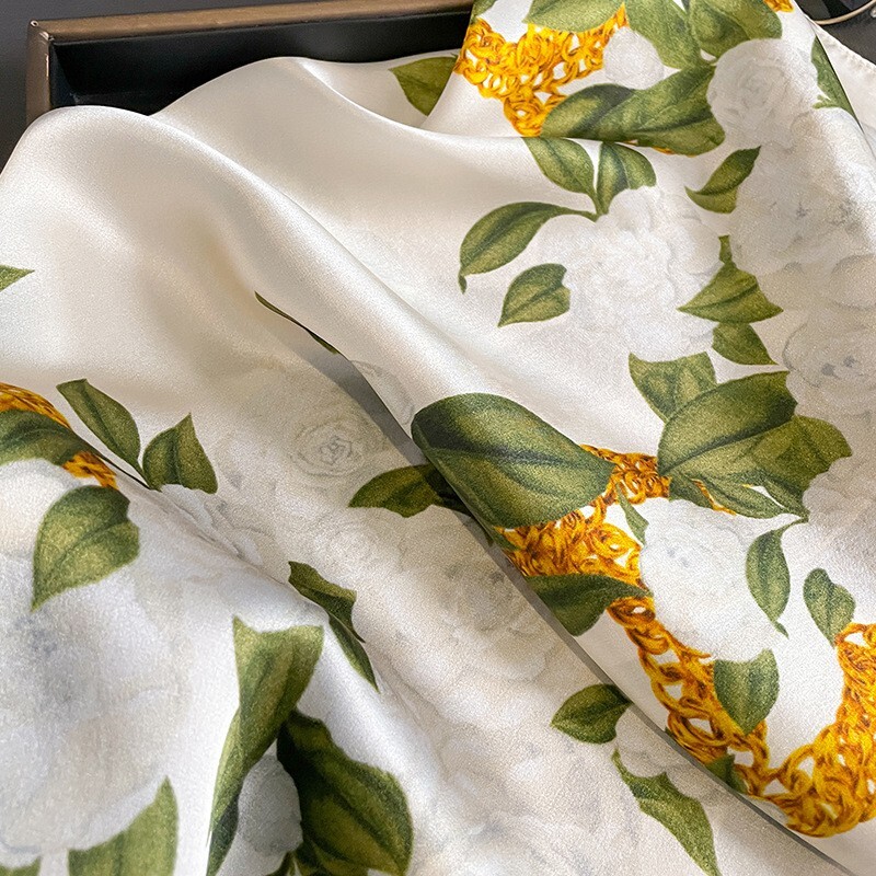 $ 16.96100% Silk 26-Inch Square Scarf for Women Retro Neckerchief Wrap in White Orange Gray with Buckle