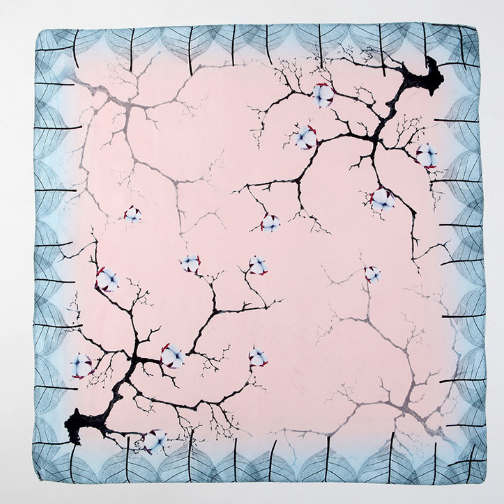 100% Mulberry Silk Scarf for Women Floral Blue White Shawl Wrap MY118-1