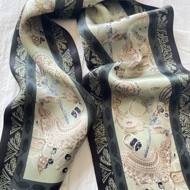 Versatile neckerchief print for adding some elegance and detail to a dark blouse or shirt. Quality jacquard twill with a great feel. Packaged well, great price, arrived quickly for overseas. Very good seller.