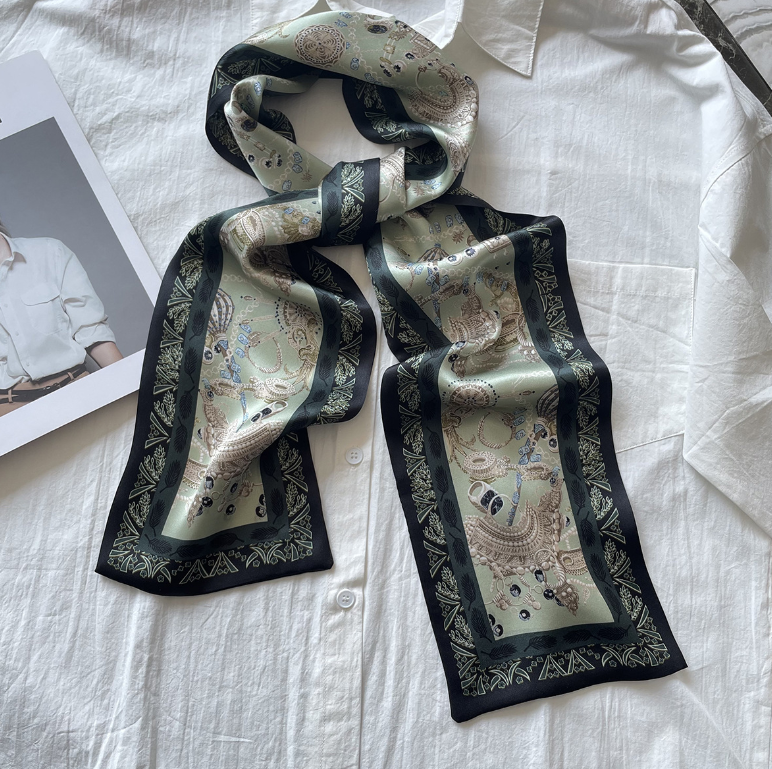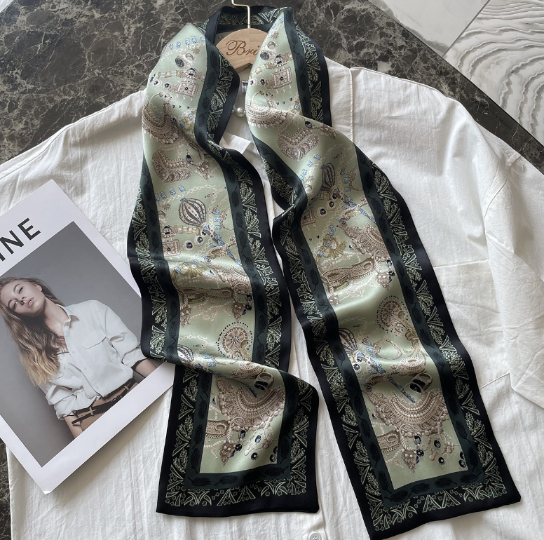 $ 5.24Sallys 100% Silk Scarf Ribbon Clips Print Slim Bag Head Band Neck Tie 85x5cm