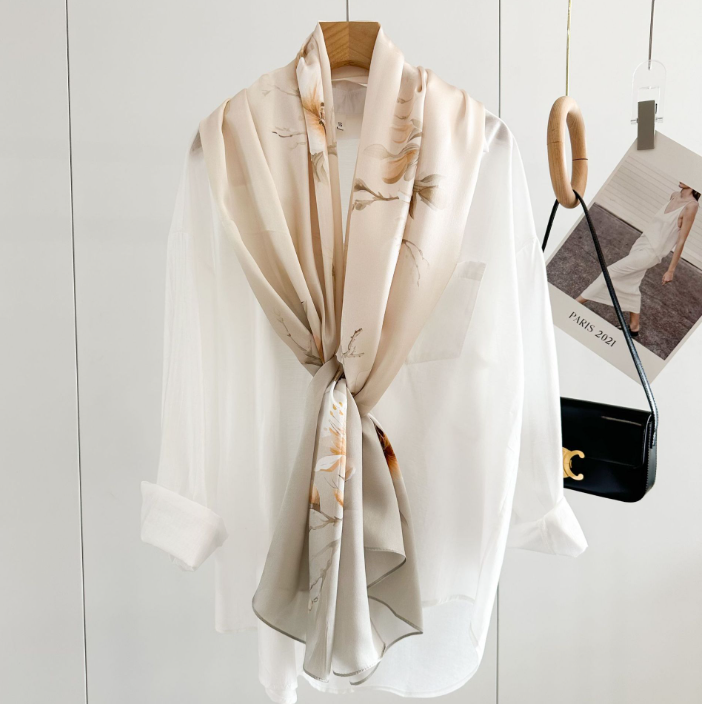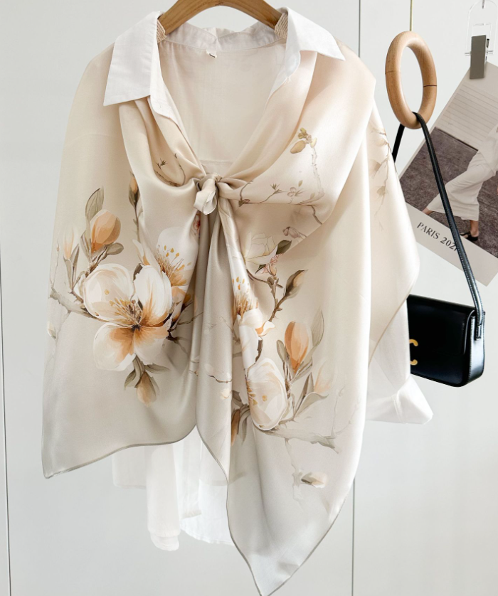 $ 29.93Sallys Twill Silk Wrap Scarf 18 Momme Castle Flowers 2 Face Shawl Kerchief 35"