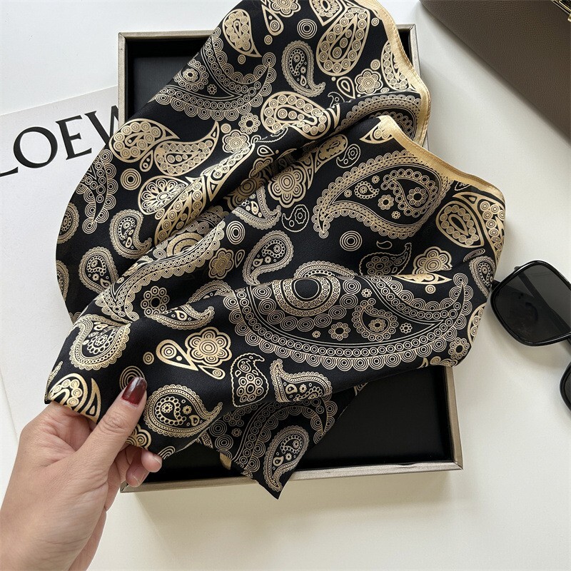 $ 8.92100% Silk 26" Black & Brown Houndstooth Scarf for Women - Hair Neck Wrap Kerchief
