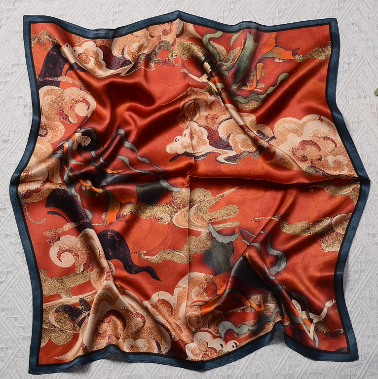 100% Silk Mulberry Scarf 68x68cm Women's Square Bandana with Red Yellow Floral Design