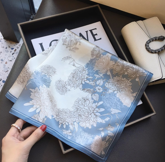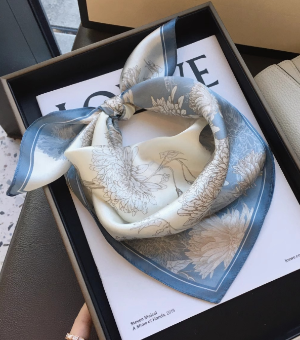 100% Silk Mulberry Scarf Wrap Bandanna 53x53cm Dandelion Print Shawl