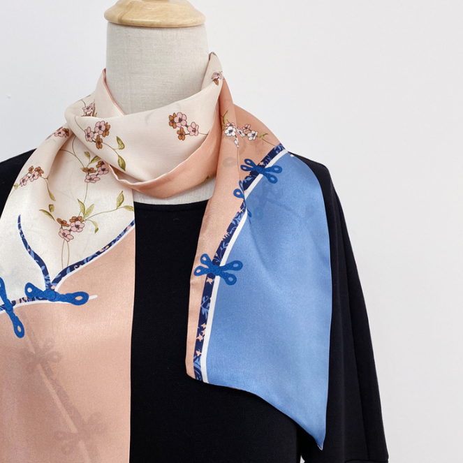 100% Silk Mulberry 150X16cm Scarf Women Neckerchief Wrap Five sided flower Print