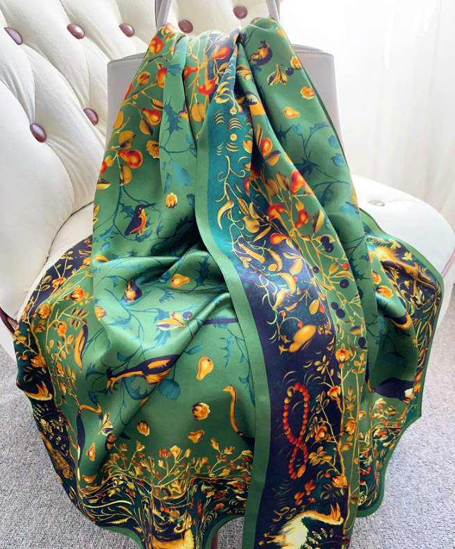 $ 16.96100% Silk Scarf Orange Euro Fashion Print Handkerchief 53x53cm for Women