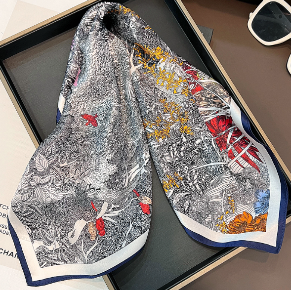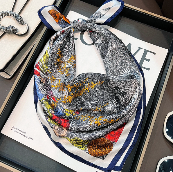 $ 6.34100% Mulberry Silk 20" square Scarf Women neckerchief Wrap Forest Jungle Zebra