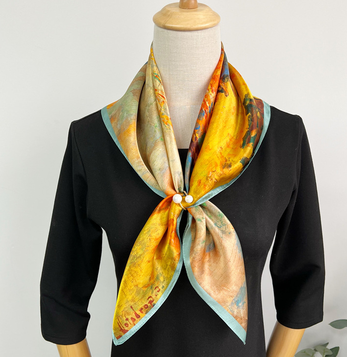 100% Mulberry Silk Scarf for Women Square Head Necktie Hairband 20-Inch Print