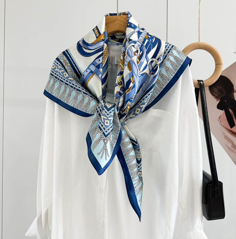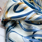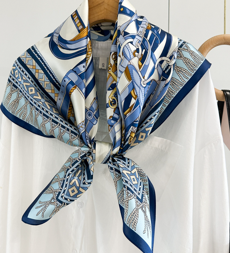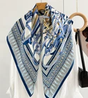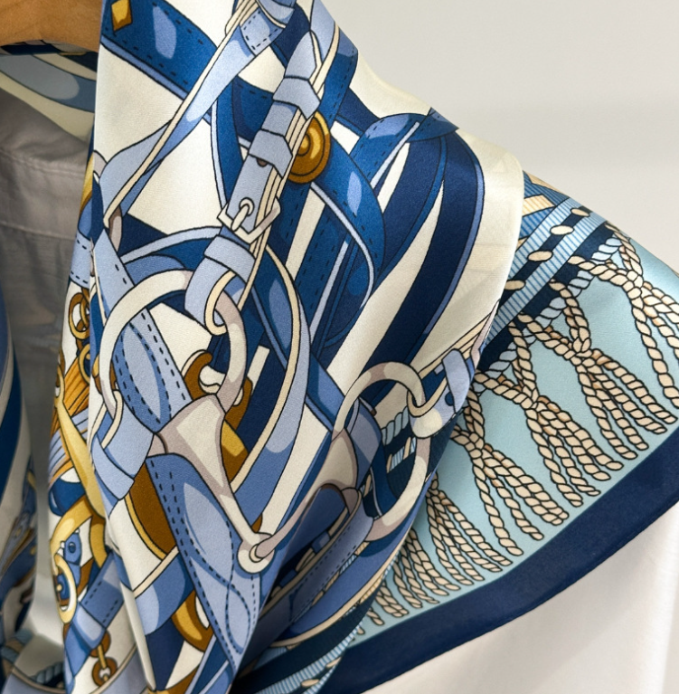 $ 15.84Pure 14 Momme Silk Wrap Scarf Bandanna Blue horse Print Square Shawl 88X88cm new