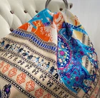 Unusually vibrant earthy paisley design in two separate colorways both of which are perfect for fall. Makes quite a statement, particularly over a jacket. Thick, high-end jacquard twill. Packaged well, arrived quickly, at a fantastic price. Very good seller.