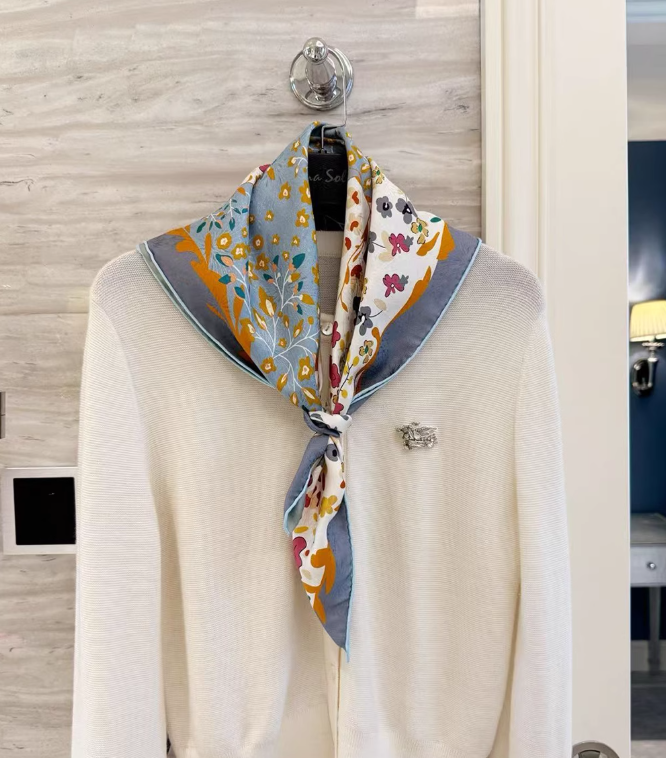I love my gorgeous silk scarf which is more beautiful than the picture!! Exactly what I wanted and looks perfect with my sweater! I was amazed by how quickly it arrived— I got an excellent price on the scarf and on shipping, too! I will definitely keep this seller!! THANK YOU SO MUCH!!