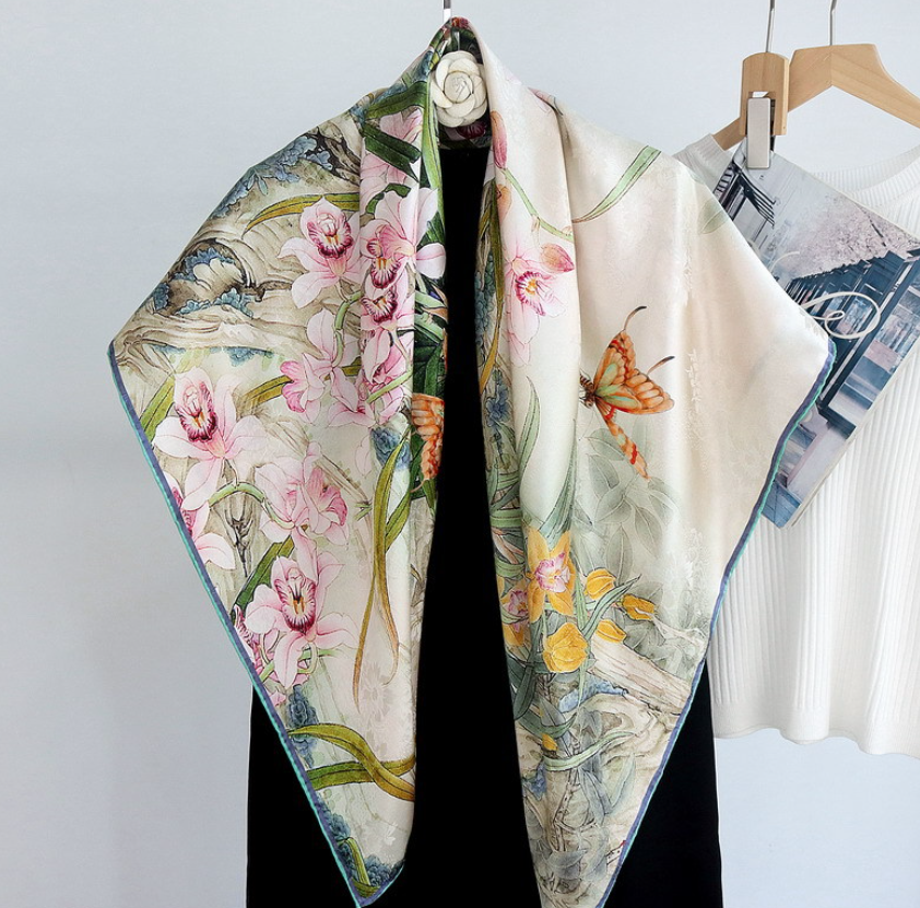 I love my gorgeous silk scarf which is more beautiful than the picture!! Exactly what I wanted and looks perfect with my sweater! I was amazed by how quickly it arrived— I got an excellent price on the scarf and on shipping, too! I will definitely keep this seller!! THANK YOU SO MUCH!!
