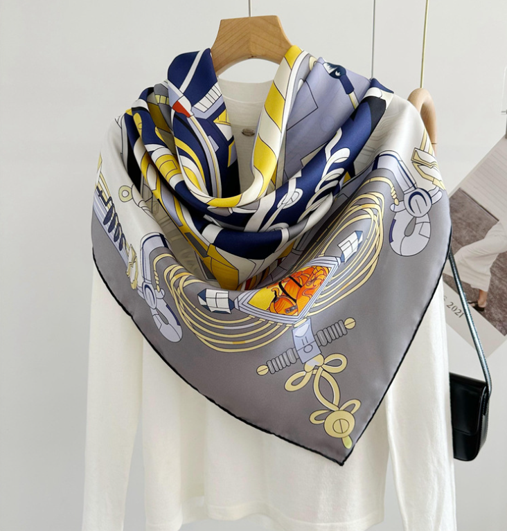 100% Silk Geometric Print Pure Twill Silk Wrap Scarf Bandana Large Shawl 53" NEW