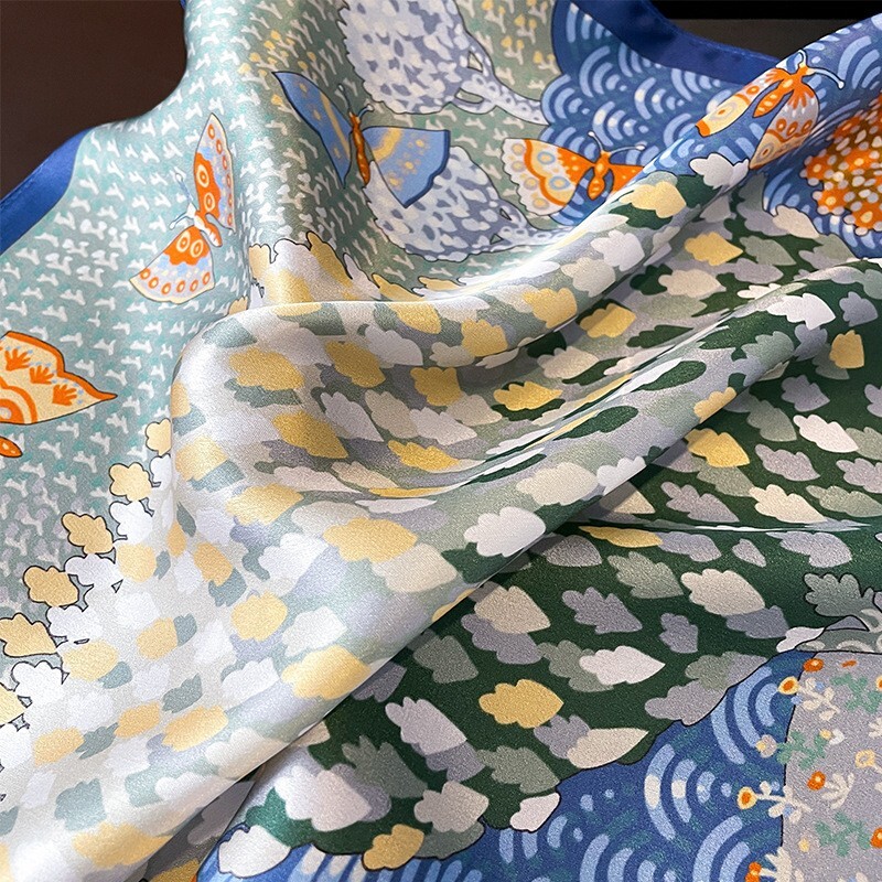 100% Silk Square Scarf for Women - Geometric Print Bandana Neckerchief Wrap 53x53cm