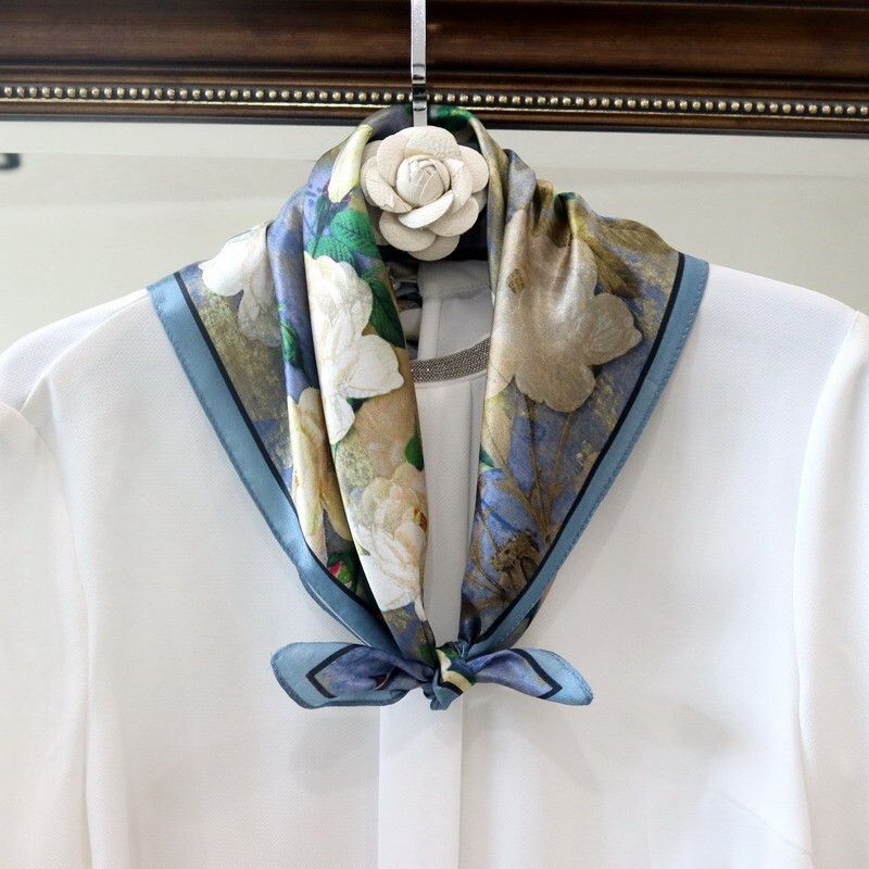 $ 7.41100% Silk 21" Square Scarf Women Neckerchief Wrap Kerchief Bandana Green Flowers