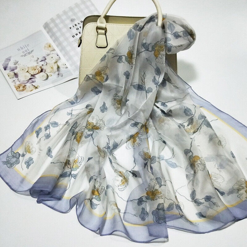 $ 1.59Pure 14 Momme Silk Scarf Brown Leaves Print Square Shawl 35 Inch