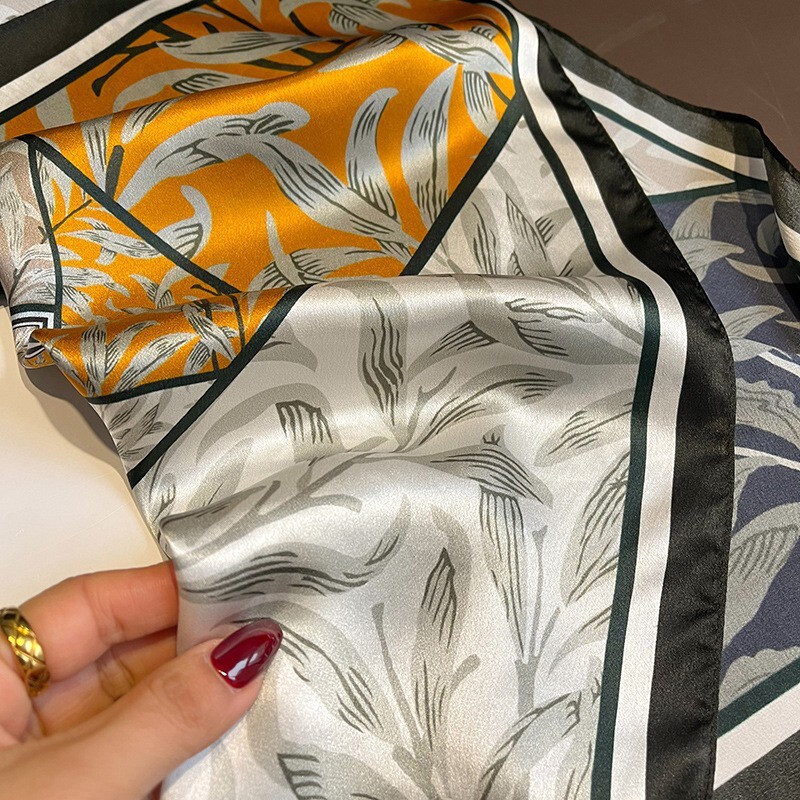 $ 8.72100% Mulberry Silk Square Scarf Women Wrap Neckerchief Grey flower 68*68cm NEW