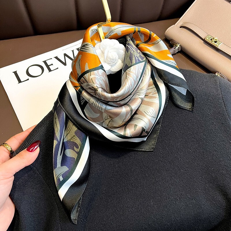 $ 8.72100% Silk Mulberry Scarf 70x70 Women Square Bandana Wrap Floral Black