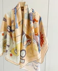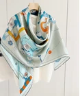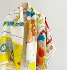 $ 26.4Pure 18 Momme Twill Silk Wrap Scarf Bandanna carriage Print Square Shawl 35'’new