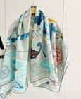 $ 26.4Pure 18 Momme Twill Silk Wrap Scarf Bandanna paradise Print Square Shawl 35'’new
