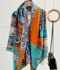 $ 26.4Pure 18 Momme Twill Silk Wrap Scarf Bandanna paradise Print Square Shawl 35'’new