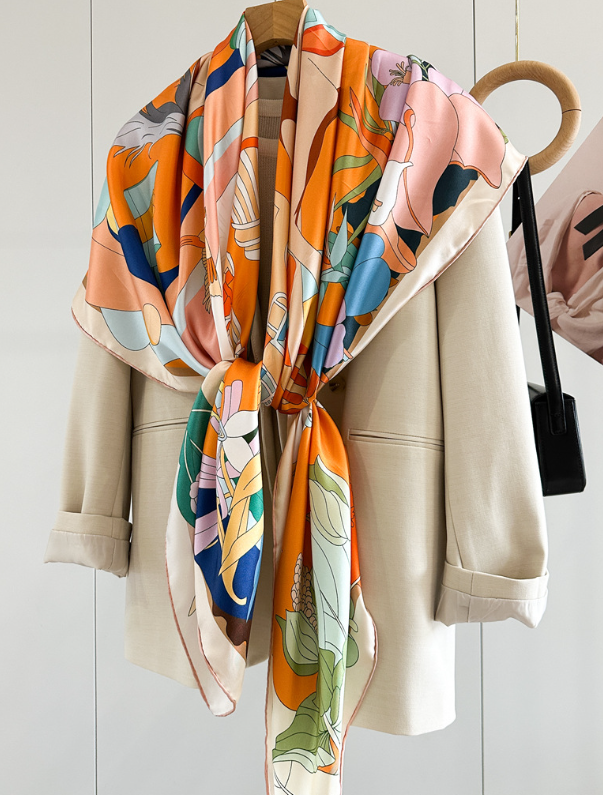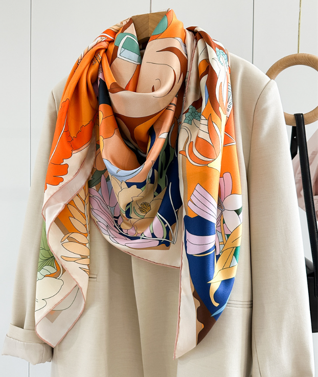 I love my gorgeous silk scarf which is more beautiful than the picture!! Exactly what I wanted and looks perfect with my sweater! I was amazed by how quickly it arrived— I got an excellent price on the scarf and on shipping, too! I will definitely keep this seller!! THANK YOU SO MUCH!!